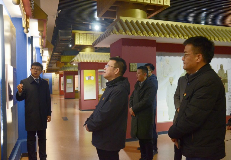 活动中,在工作人员的带领介绍下,全体党员参观了文溯阁《四库全书》展,了解了《四库全书》的编撰过程及馆藏历史。《四库全书》编撰于乾隆年间,历时多年,是集数千年中华传统文化大成之巅峰巨制,分为经、史、子、集四部,收录了中国古代典籍近3500种,全书7亿多字,装订成36000余册,涵盖了中国古代所有学术领域,保存了丰富的文献资料,是中华民族珍贵的文化遗产,也是全人类共同拥有的宝贵精神财富。兰州文溯阁《四库全书》是我国现存的《四库全书》三部半中的一部,这部书原保存在沈阳,1966年10月为了备战运往甘肃保管。为更好保存《四库全书》,1999年5月,甘肃省政府作出了在省会兰州立项修建文溯阁《四库全书》藏书库的决定,在兰州黄河岸畔北山九州台修建文溯阁《四库全书》藏书楼。2005年7月8日,新建成的仿文溯阁四库全书藏书馆正式开馆。
