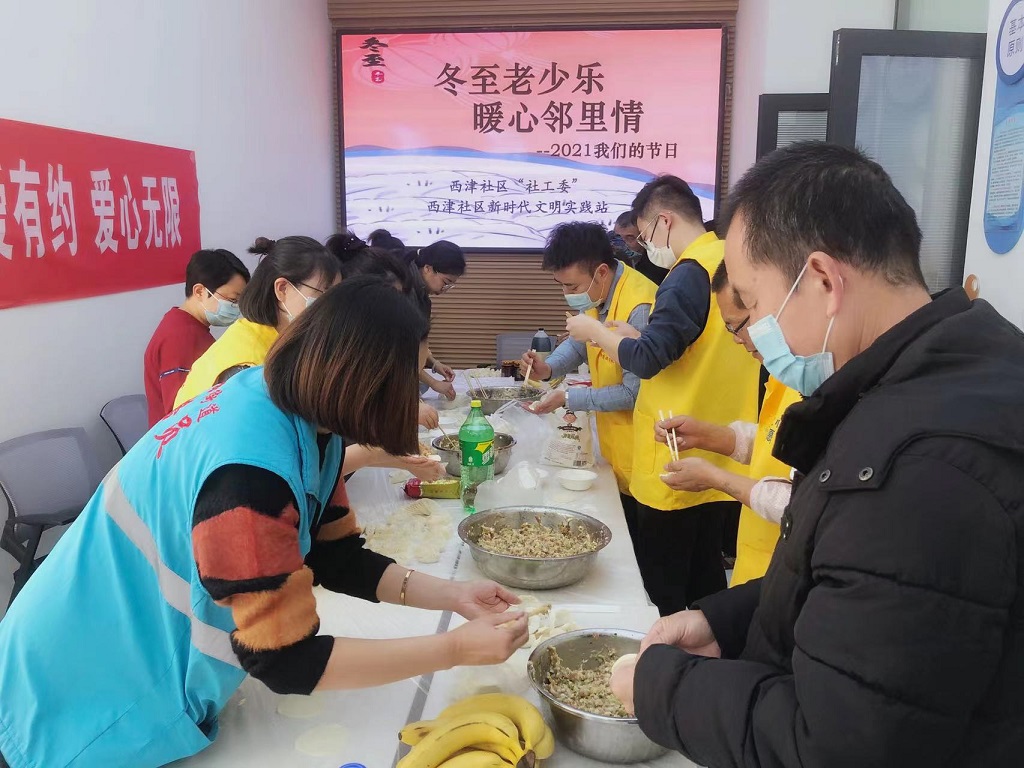 为了推动“我为群众办实事”实践活动取得实效,让失独家庭的群众过上一个温暖愉快的冬至节,12月21日,永利12311手机版志愿者服务队联合敦煌路街道西津社区,组织辖区失独家庭11名居民群众举办了“冬至老少乐 暖心邻里情”活动,为他们奉上了一道温暖祥和的饺子“盛宴”。