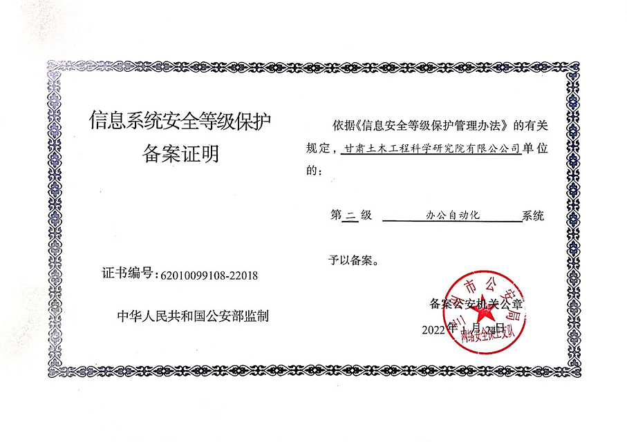 desc: '甘肃工程咨询集团股份公司信息系统通过安全等级保护2.0备案认证',