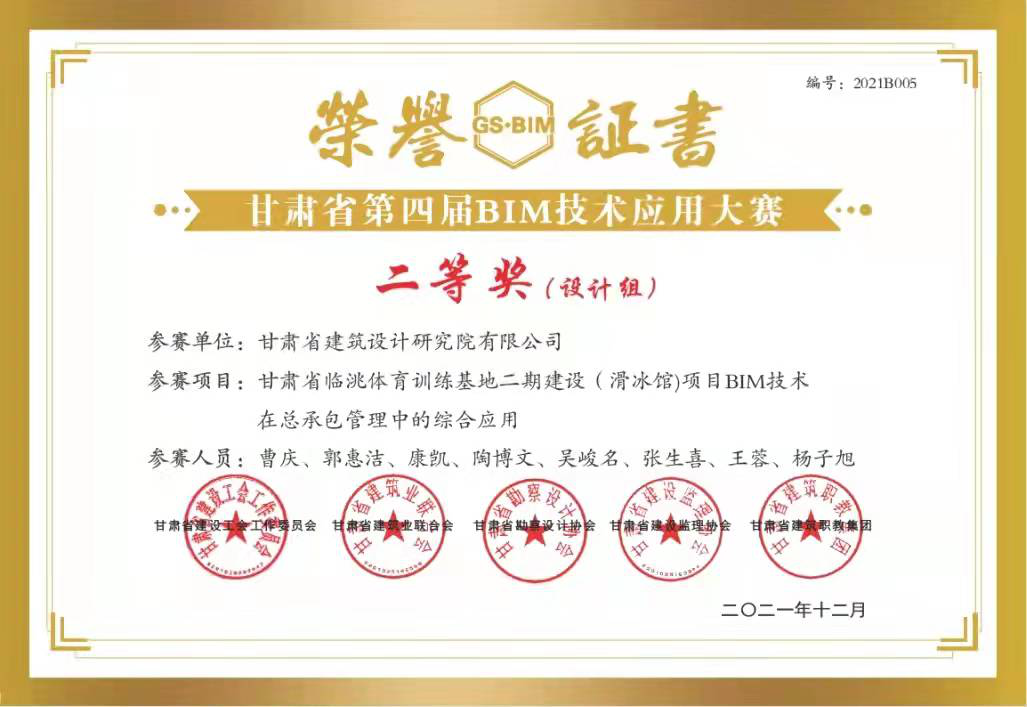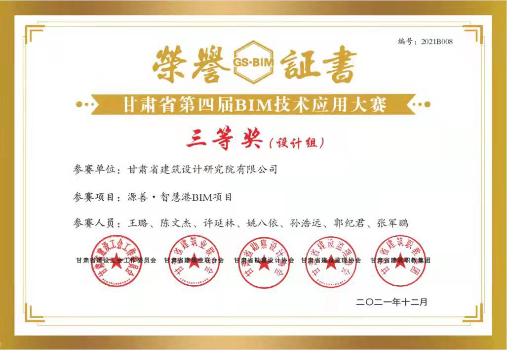 日前,甘肃省建设工会工作委员会、甘肃省建筑业联合会、甘肃省勘察设计协会、甘肃省建设监理协会、甘肃省建筑职教集团联合举办的“2021年甘肃省职工职业技能竞赛暨甘肃省第四届BIM技术应用大赛”评选结果揭晓,甘肃省城乡规划设计研究院有限公司“BIM技术正向设计在兰州中川国际机场三期扩建工程航站区附属用房工程项目中的应用”获得“BIM技术应用作品征集”比赛设计组一等奖;甘肃省建筑设计研究院有限公司“甘肃省临洮体育训练基地二期建设(滑冰馆)项目BIM技术在总承包管理中的综合应用”获得二等奖,“缘善智慧港BIM项目”获得三等奖;甘肃省建设监理有限责任公司李燕燕获得“BIM技术技能比赛”三等奖。