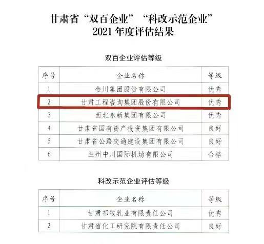 永利12311手机版获甘肃省2021年度“双百企业”评估“优秀”等级