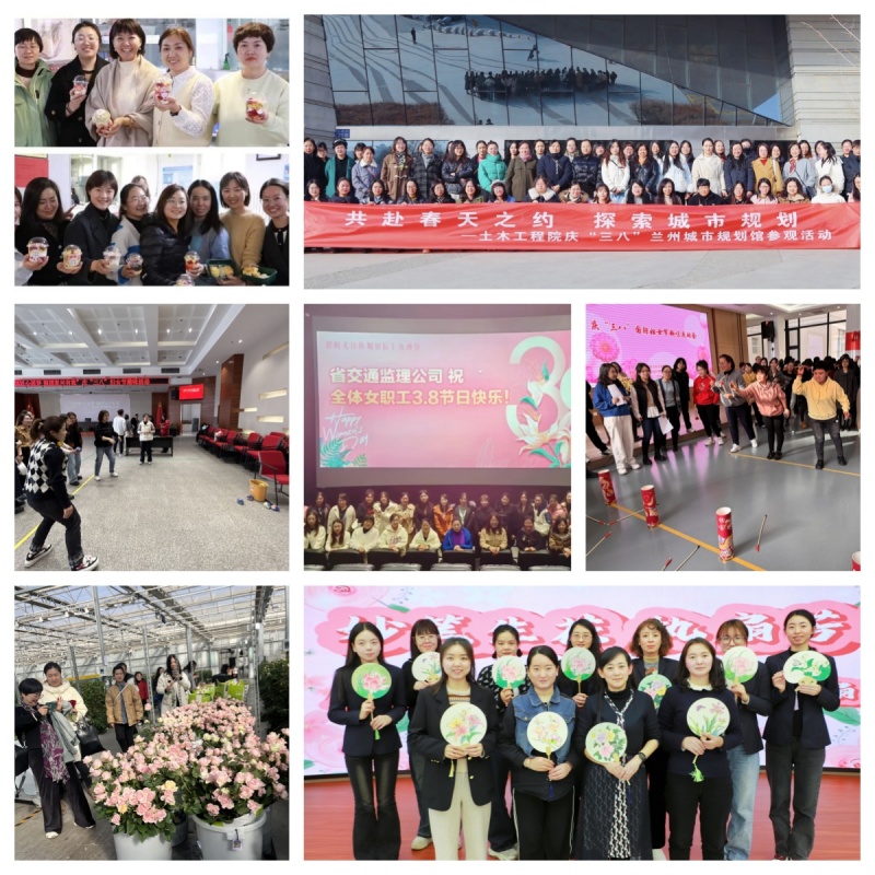 建筑设计院联合省建设工会举办巾帼劳模宣讲会和职工趣味运动会,弘扬劳模精神、劳动精神、工匠精神,展现了女职工自信自强、昂扬向上的精神风貌。水电设计院举办甜品烘焙、棋牌娱乐活动,让幸福在动手中加“焙”,让快乐在交流中传递。规划设计院组织趣味运动会,女职工们激情饱满、团结协作、配合默契,展现了齐心协力、友爱互助的奋发姿态。土木工程院开展兰州城市规划馆参观活动,让女职工充分感受兰州的历史之美、时代之美、未来之美,积蓄建设新时代美丽甘肃的奋进力量。招标咨询集团举办“妙笔生花,执扇芳华”主题活动,女职工们扇面挥毫、丝线着色,创作了一幅幅匠心独具的作品,彰显艺术修养和审美意趣。交通监理公司组织女职工观看电影《第二十条》,增强大家知法学法懂法守法用法的意识。建设监理公司组织女职工开展采摘踏青活动,参观美丽乡村,在田野中放飞梦想,增强团队凝聚力。