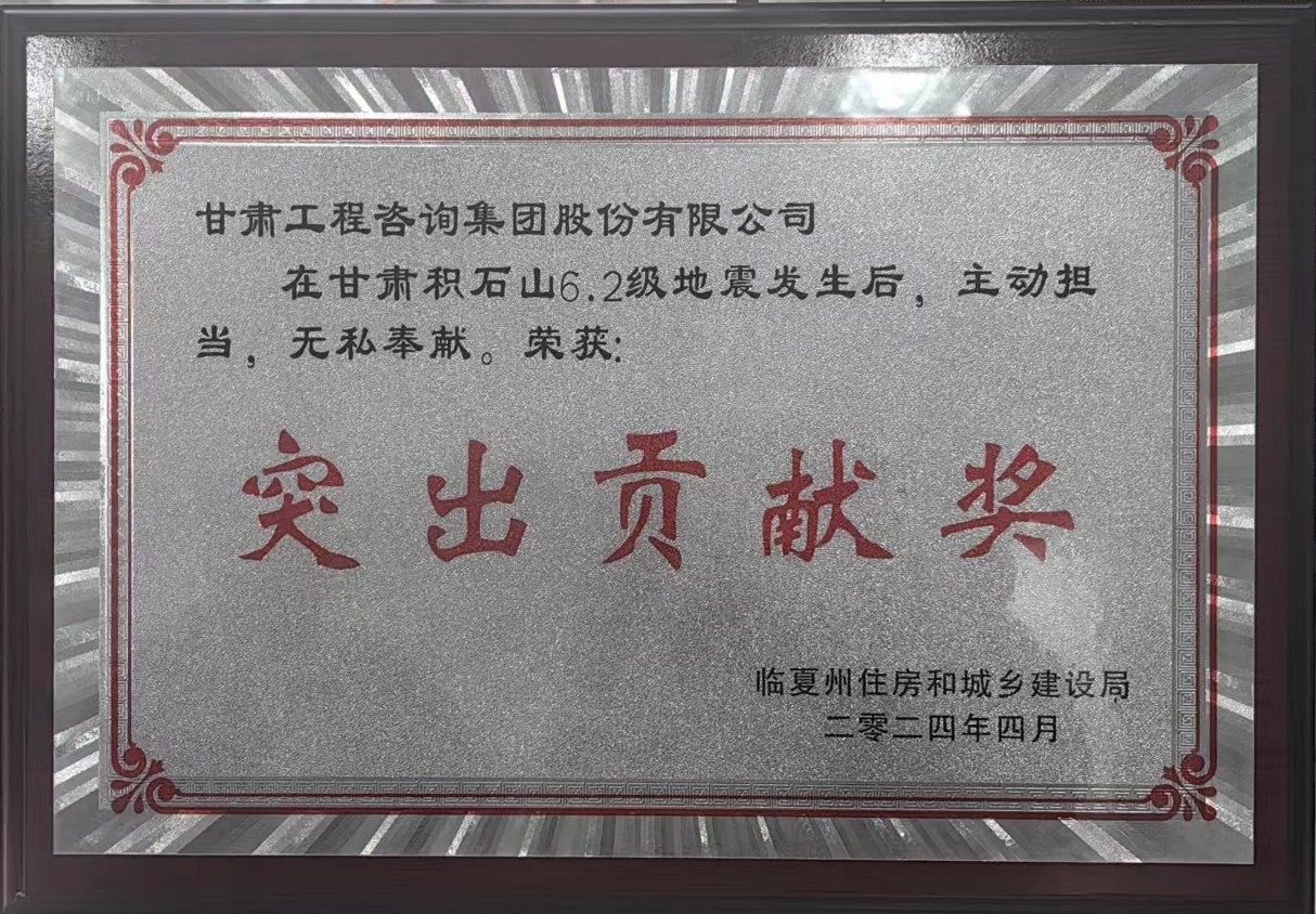 在甘肃积石山6.2级地震后,永利12311手机版主动担当,无私奉献,在应急救援、灾后重建工作中表现突出,被临夏州住房和城乡建设局授予“突出贡献奖”。