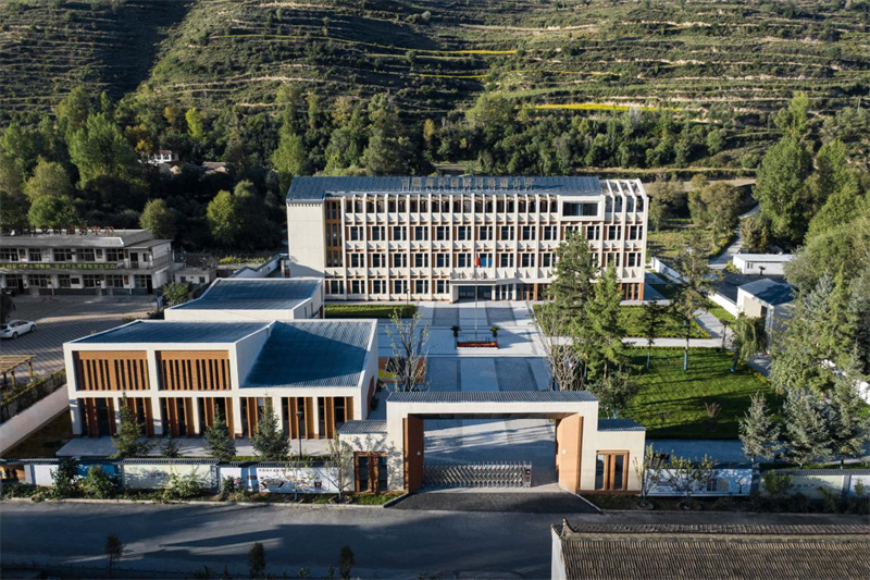 中国海外温家河希望小学项目综合考量环境、功能、空间、外立面等因素,呈现了当地传统民居的二合院样式,充分展现了临夏特色的建筑艺术特征。