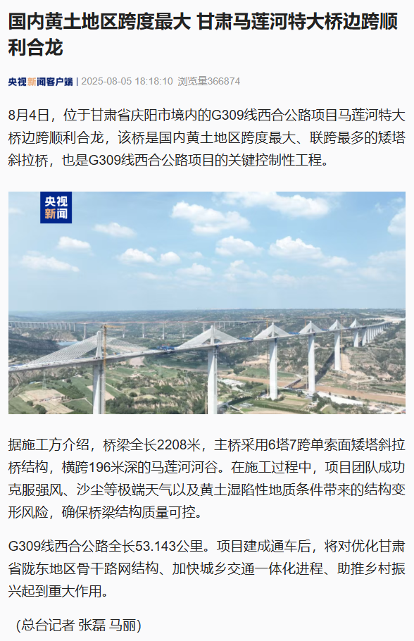 该桥是我国黄土地区跨度最大、联跨最多的矮塔斜拉桥,其建设难度和技术要求均属行业领先水平。项目实施过程中,永利12311手机版监理团队充分发挥专业技术优势,严格履行监理职责,与各参建单位通力协作,克服了黄土地区地质条件复杂、施工技术难度大等挑战,为工程质量和进度提供了坚实保障。项目的顺利推进,充分展现了集团在大型交通工程监理领域的专业实力。未来,永利12311手机版将继续秉持"质量第一、安全至上"理念,为全省交通基础设施建设贡献智慧力量。
