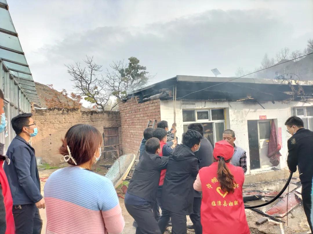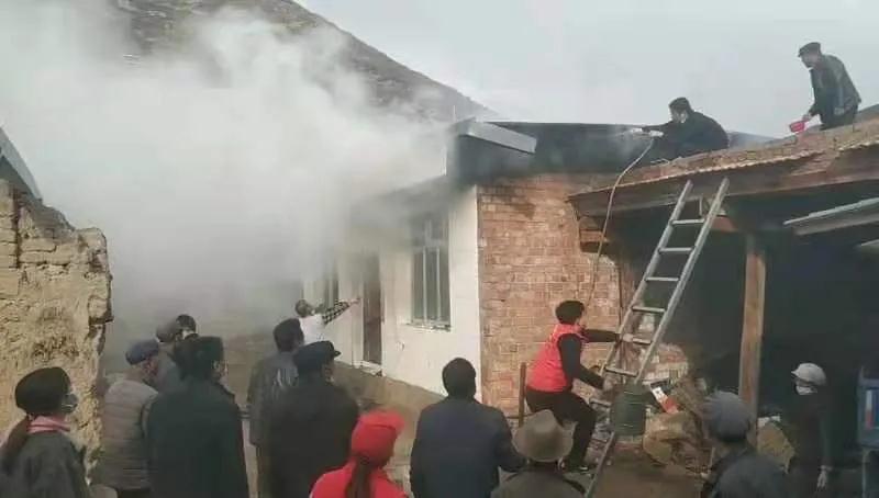 听到村民们的呼救声,正在村口疫情防控监测点值守的帮扶工作队队员、包村干部与镇领导、村“两委”干部及志愿者一起,第一时间冲向了火灾现场,实施开展扑救工作。现场火势凶猛,尽管众人一起用水倾浇,却仍未阻止火势蔓延。瞬间,屋顶的横梁也烧着了,发出噼啪的响声,房顶隐约在摇晃,可大家依然奋不顾身地救火,甚至有人冲上了危险的屋顶。