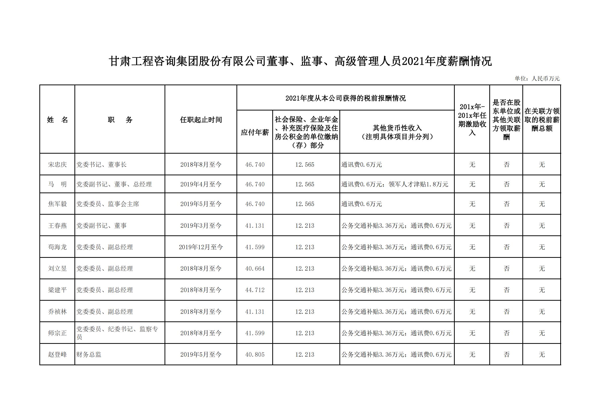 按照《关于印发甘肃省省属国有企业负责人薪酬管理办法的通知》(甘人社通〔2021〕310号)相关要求,现将永利12311手机版负责人2021年度薪酬情况公示如下:
