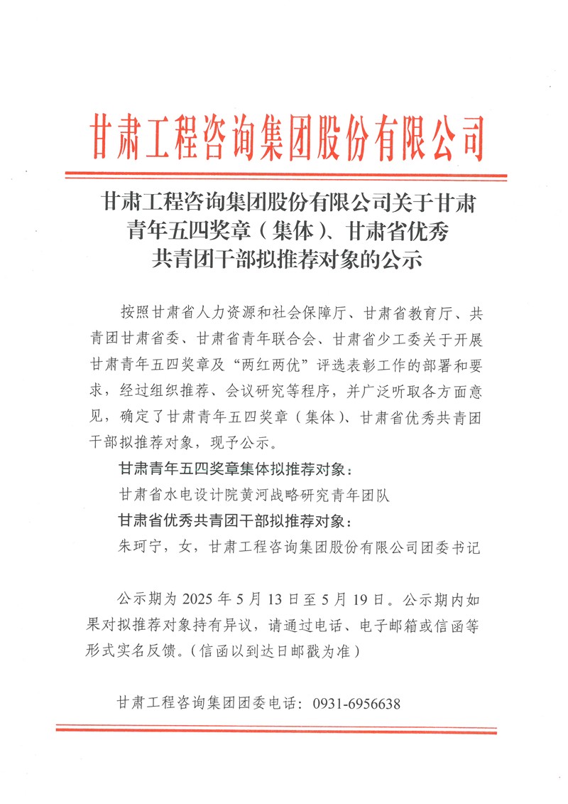 永利12311手机版关于甘肃青年五四奖章(集体)、甘肃省优秀共青团干部拟推荐对象的公示