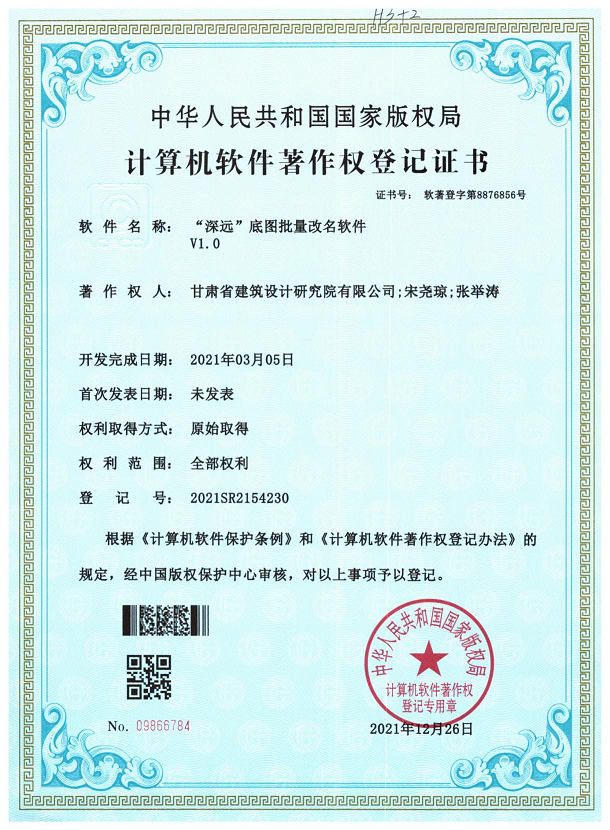 12月26日,从国家版权局传来好消息,建筑设计院原创研发的“‘深远’底图后处理系统”和“‘深远’底图批量改名软件”获国家版权局颁发的计算机软件著作权登记证书。这标志着建筑设计院智能化数字化建设工作取得了实质进展和成效,向智能化数字化迈出了关键一步。