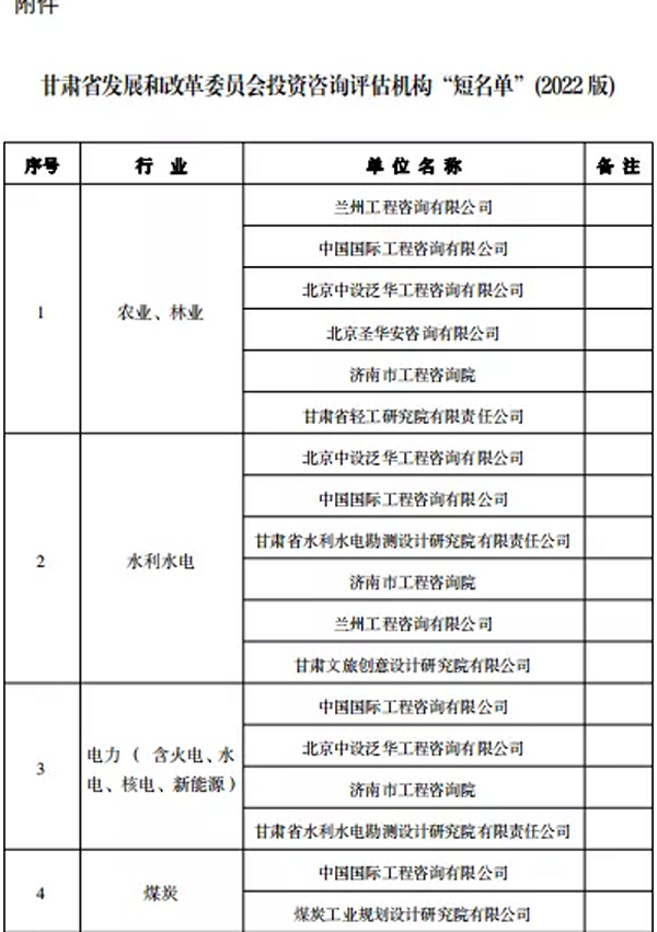 title: '喜讯！甘肃省水利水电勘测设计研究院有限责任公司<br>成功入围省发改委三个行业板块投资咨询评估机构“短名单”',