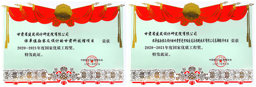 title: '喜报！甘肃省建筑设计研究院有限公司喜获两项国家优质工程奖',