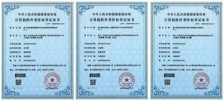 title: '喜报！甘肃省水利水电勘测设计研究院有限责任公司三项计算机软件获得著作权登记证书',