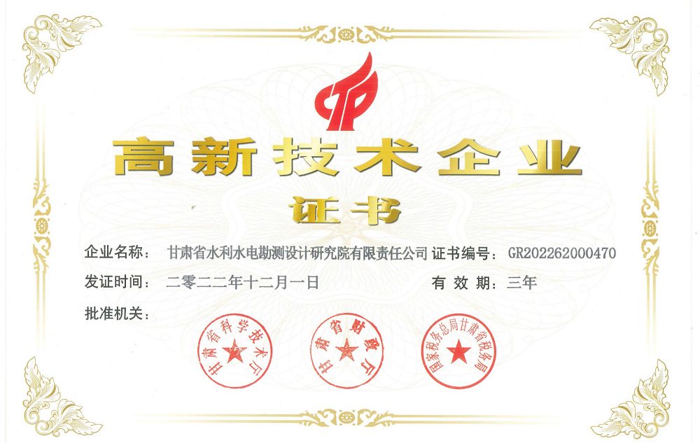 <p style="text-align: left; text-indent: 2em;"><span style="font-size: 18px;">日前，甘肃省水利水电勘测设计研究院有限责任公司获得甘肃省科技厅、甘肃省财政厅、国家税务总局甘肃省税务局联合颁发的“高新技术企业证书”（证书编号：GR202262000470），标志着水电设计院正式迈入国家高新技术企业行列，是企业发展的又一个重要里程碑。</span></p><p style="text-align: center"><img src="../../hdupf/img/202301/202301131673615359657955.png"/></p><p></p><p style="text-align: left; text-indent: 2em;"><span style="font-size: 18px;">国家高新技术企业是列入《国家重点支持的高新技术领域》内，持续进行研究开发与技术成果转化，形成企业核心自主知识产权，并以此为基础开展生产经营活动。表明企业的开发组织管理水平高，企业成长性好，是知识密集型、技术密集型经济实体，也是我国科技创新企业的重要荣誉之一。高新技术企业资格证书的取得，进一步说明水电设计院在自主创新能力、科技成果转化能力及科研组织管理能力得到了充分肯定，进一步展示了企业在传统产业基础上的科研创新成就和高质量品牌美誉度。</span></p><p style="text-align: left; text-indent: 2em;"><span style="font-size: 18px;">水电设计院作为一家具有65年发展历史的传统勘测设计企业，拥有15项甲级资质和多项乙级资质，业务范围遍及国内外，长期以来高度重视科研创新，近三年来，更是在研发投入体系建设、研发组织管理体系、科技成果转化、知识产权保护等多个维度快速提升，先后获得发明专利4项，实用新型专利51项，计算机软著权38项，多个项目获得国家级、省级科技进步奖项，是省内水利水电勘测设计领域领先的创新型企业。</span></p><p style="text-align: left; text-indent: 2em;"><span style="font-size: 18px;">此次荣誉的获得，是对水电设计院科研综合实力的一种权威认可和鼓舞，对促进企业科技转型，激发企业自主创新热情，提高科技创新能力，具有积极的促进作用，也对我们提出了更高的科技要求。水电设计院将以此次高新技术企业认定为新台阶，持续走好传统产业和高新技术研发协同融合发展之路，进一步加大研发投入，加强高素质人才团队建设，完善科研奖励机制，不断激发科技创新活力，增强创新发展后劲，努力把甘肃宏伟“水蓝图”变为美好现实。</span></p><p style="text-align: right; text-indent: 2em;"><span style="font-size: 18px; color: rgb(165, 165, 165);">(责任编辑：田树芬)</span></p>                        </div>