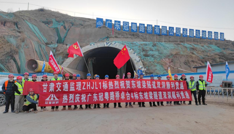由省交通监理公司承监的卓合项目东坡梁隧道左、右洞顺利贯通,标志着卓合高速公路建设取得重大进展,实现关键性节点突破。东坡梁隧道位于临潭县城关镇杨升沟至范家咀村地段山体,隧道按左、右线分离式设计,进口最大净距34m,出口最大净距24m,左线隧道进口桩号ZK76+020,出口桩号ZK78+575,全长2555m,右线隧道进口桩号K76+030,出口桩号K78+605,全长2575m。隧址区高程2780.00~2953.00,相对高差173m,隧道左线最大埋深156.5m,右线最大埋深148m,围岩为中风化泥岩,褐红色,薄层状构造,胶结程度一般,施工难度较大。自开工以来,卓合项目总监办及第一驻地办始终紧盯质量、安全、目标不放松,督促施工单位认真贯彻落实省厅质量和管理“双提升”各项要求,完善施工工艺,在全体监理人员的不懈努力下,通过精细化管控、标准化施工、合理化创新,有效解决了施工过程中出现的各种不利因素和风险点,大大提高了工程质量和施工效率,圆满完成了隧道掘进施工监理任务。