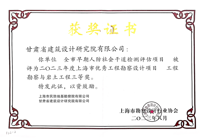 <p style="text-align: justify; text-indent: 2em;"><span style="font-size: 18px;">近日，上海市勘察设计行业协会公布了2023年度上海市优秀工程勘察设计项目奖评奖结果，省建筑设计院检测中心提交的“全市早期人防社会干道检测评估项目”荣获2023年度上海市优秀工程勘察设计项目工程勘察与岩土工程三等奖。</span></p><p style="text-align: justify; text-indent: 2em;"><span style="font-size: 18px;"></span></p><p style="text-align: center"><img src="../../hdupf/img/202311/202311011698835106522276.png"/></p><p></p><p style="text-align: justify; text-indent: 2em;"><span style="font-size: 18px;">据了解，上海市优秀工程勘察设计项目评定活动，是上海市勘察设计行业协会受上海市住房和城乡建设管理委员会委托，组织评选上海市勘察设计行业年度重磅奖项，是为推动工程勘察设计行业技术创新，鼓励工程勘察设计人员积极设计创作而开展的重要活动。</span></p><p style="text-align: justify; text-indent: 2em;"><span style="font-size: 18px;">本次获奖项目由省建筑设计院检测中心联合上海市民防地基勘察院有限公司，就兰州市七八十年代人防社会干道开展检测鉴定。项目获奖，彰显了省建筑设计院在工程勘察设计和检测鉴定方面的创新能力和技术水平，也是对公司检测业务板块整体运营效率、综合服务能力的再一次肯定。</span></p><p></p><p style="text-align: center"><img src="../../hdupf/img/202311/202311011698835118544739.png"/></p><p style="text-align: right;">(责任编辑：杨&nbsp; 虹)<br/></p>                        </div>
