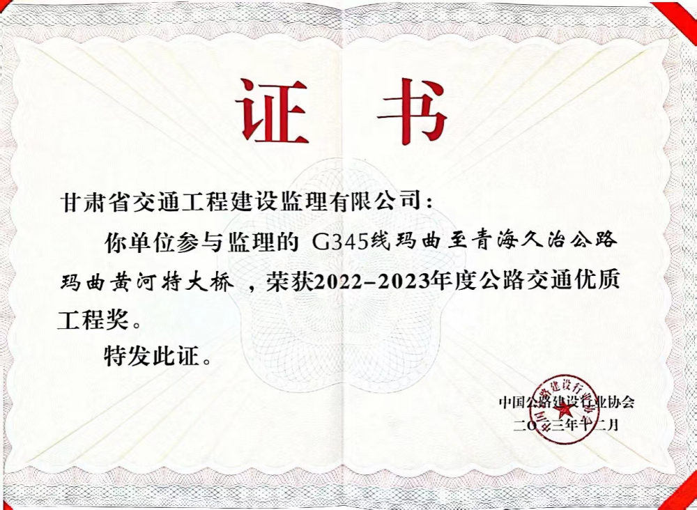desc: '省交通监理公司“代建+监理”的G345线玛曲至青海久治公路玛曲黄河特大桥荣获公路交通优质工程奖',