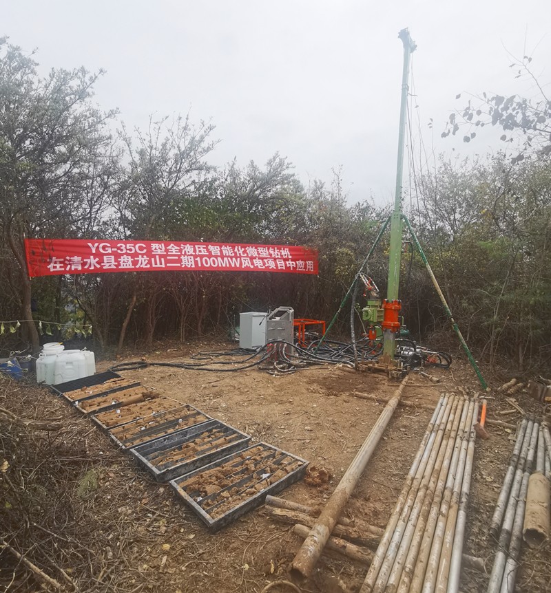 日前,省水电设计院研发的YG-35C型全液压智能化微型钻机,在清水县盘龙山二期100MW风电项目中成功应用。