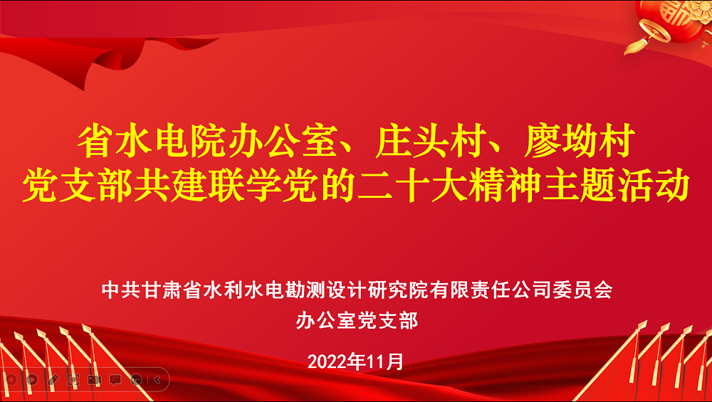 <p style="text-align: left; text-indent: 2em;"><span style="font-size: 18px;">为持续促进党的二十大精神学习贯彻走深走实，使党的二十大精神进村入户、深入人心，11月22日，甘肃省水利水电勘测设计研究院有限责任公司办公室党支部与帮扶村西峰区庄头村党支部、廖坳村党支部开展共建联学党的二十大精神主题活动。</span></p><p style="text-align: center"><img src="../../hdupf/img/202211/20221124185340_358590.png"/></p><p style="text-align: left; text-indent: 2em;"><span style="font-size: 18px;">会议以视频形式召开，两个帮扶村在线下设分会场，村党支部成员在分会场参加。会上，水电设计院办公室党支部书记陈红宝对党的二十大精神进行了辅导宣讲，办公室党支部、帮扶工作联系人、驻村干部和两个村党支部书记、村民党员代表等9人作了交流发言。</span></p><p style="text-align: center"><img src="../../hdupf/img/202211/20221124185340_404183.png"/></p><p style="text-align: left; text-indent: 2em;"><span style="font-size: 18px;">会议强调，当前，帮扶工作正处于持续发力期，办公室党支部和两个帮扶村党支部要通过结对共建方式，共同努力，认真抓好党的二十大精神的学习宣传贯彻工作，进一步增强新时代乡村振兴工作的使命感责任感，真抓实干、埋头苦干，携手并进，奋力开创全面推进乡村振兴新局面。</span></p><p style="text-align: center"><img src="../../hdupf/img/202211/20221124185340_602954.png"/></p><p style="text-align: left; text-indent: 2em;"><span style="font-size: 18px;">会议要求，学习宣传贯彻党的二十大精神是当前的首要政治任务。结对党支部和驻村工作队要高度重视，充分利用村级党建阵地，通过“三会一课”、主题党日、进社入户、座谈交流、悬挂标语等多种方式，切实学习好、宣传好、落实好党的二十大精神，自觉把思想和行动统一到党的二十大精神上来。要持续加强党组织建设，不断增强党组织的凝聚力和领导力，提高基层党组织对工作的牵头抓总能力和协调推动能力。要突出抓好产业培育，持续做好教育帮扶、消费帮扶、慰问帮扶等工作，立足村域经济实际，制定规划目标，培育发展产业，不断增强内生动力，拓宽增收渠道，为乡村振兴汇聚起磅礴力量，将党的二十大精神学习成果转化为推动乡村振兴帮扶工作不断前进的实际成效。</span></p><p><br/></p><p style="text-align: right; text-indent: 0em;"><span style="font-size: 18px; color: rgb(165, 165, 165);">（责任编辑：田树芬）</span></p>                        </div>